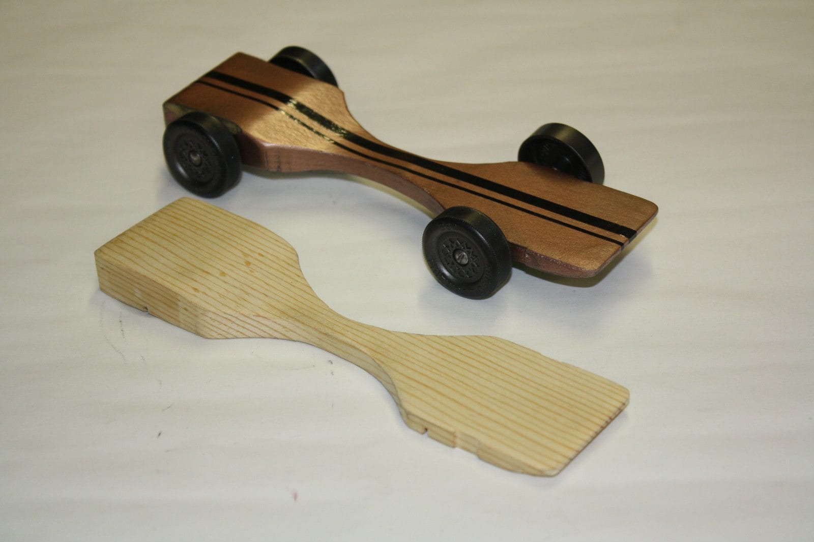 pre-cut pinewood derby car body, weight, prepared
