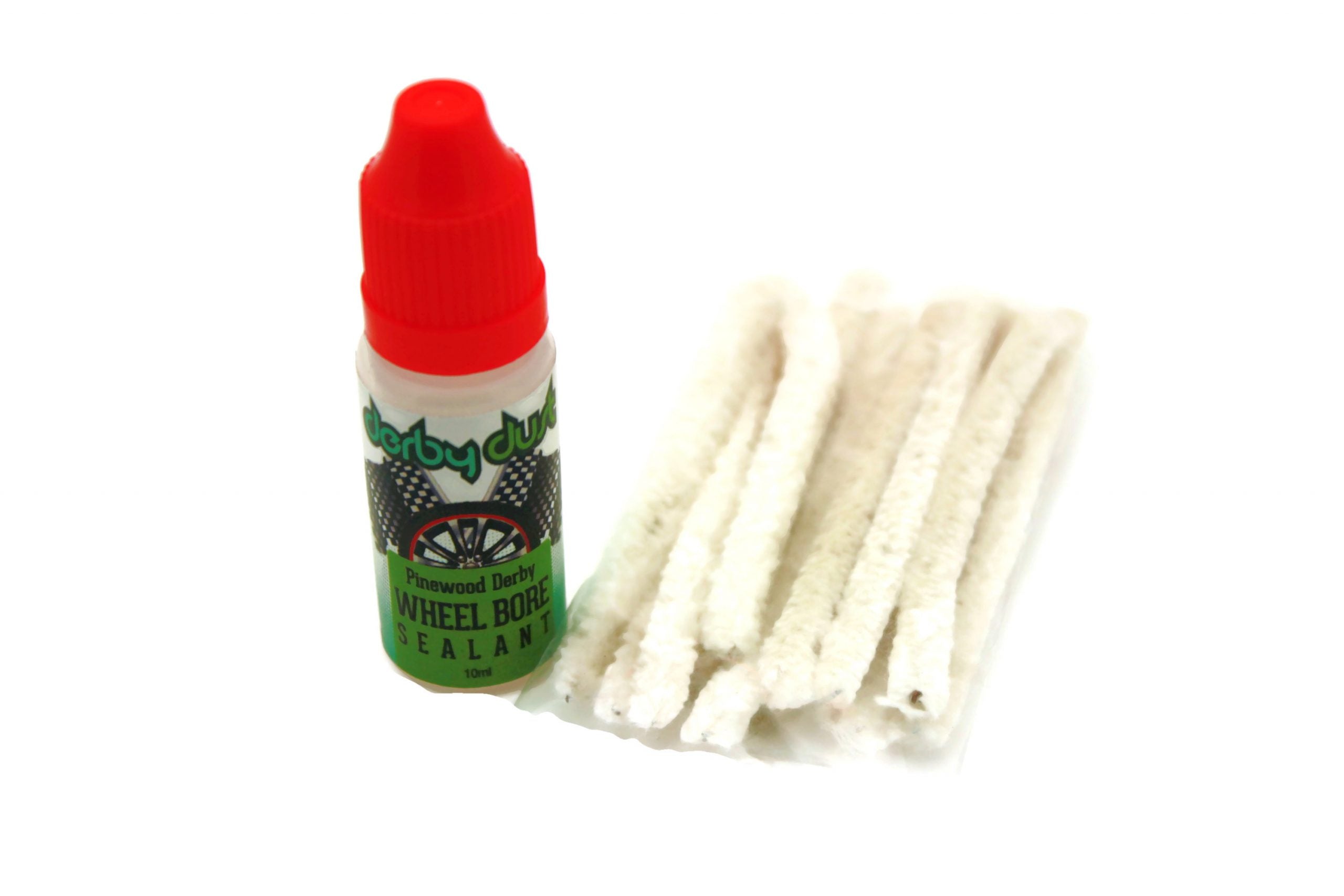 Pinewood Wheel Bore Sealant is the last step in wheel prep for that Derby dad who needs the extra edge to a race. Factory and reamed wheel bores contain minute (small) scratches, ridges and rough spots that create friction and decrease the car's racing speed. Polish smooth with our