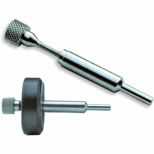 The Pro-Mandrel is used to hold wheels in a drill or a lathe. User may polish or machine the wheels. When mounting the Pro-Mandrel in a standard drill, drill press, or lathe, fasten the chuck around the wide portion of the shaft. The face of the Pro-Mandrel has a step-down to allow mounting BSA wheels with the spokes facing towards the mandrel. This simplifies polishing the inside edge of the wheel. The Pro-Mandrel screw has a beveled face to ensure that the wheel is centered on the mandrel screw.