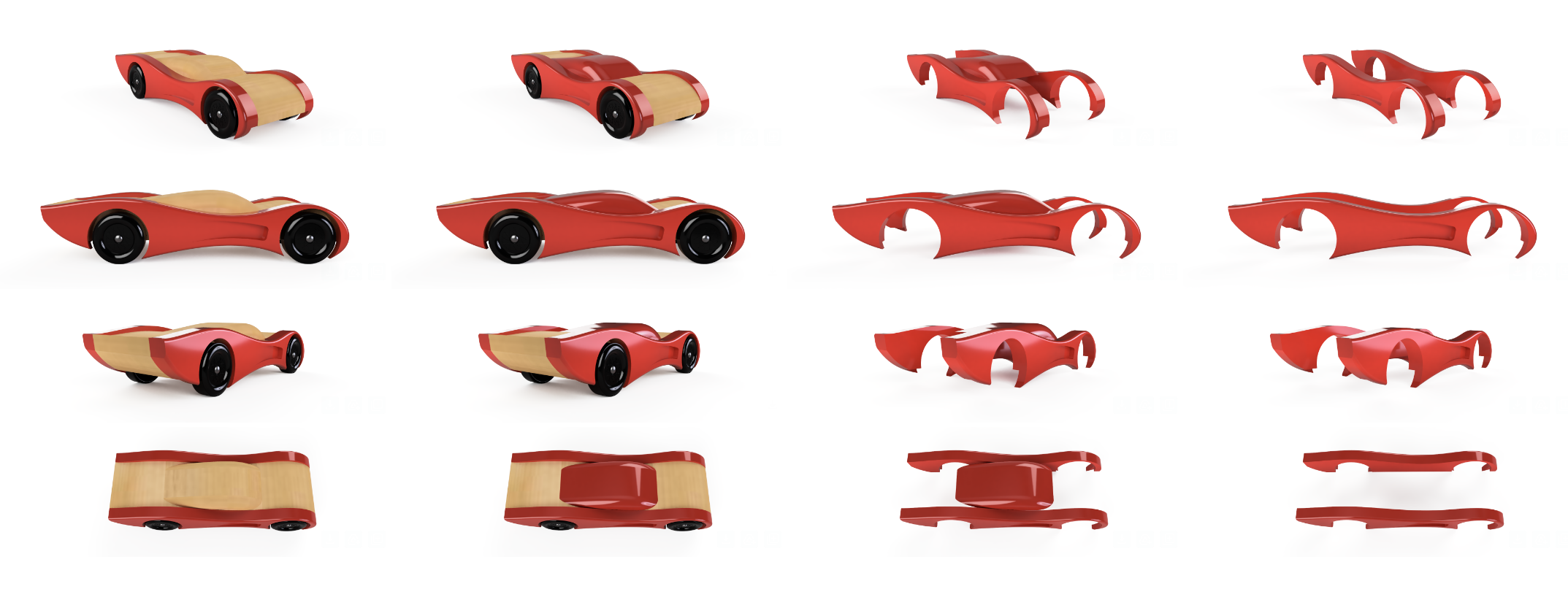Our 3D printed parts are easy to attach, allowing for quick and straightforward assembly. Add some super glue and you are good to go. If you like super smooth surfaces, you can fill in the layer lines with wood putty and sand smooth. They can also be used as is which is our method of choice. You can paint them, customize them, and integrate them seamlessly into your build, giving you complete creative control over the final look. Whether you're a seasoned designer or building your first derby car, these accessories are designed to inspire creativity and innovation.